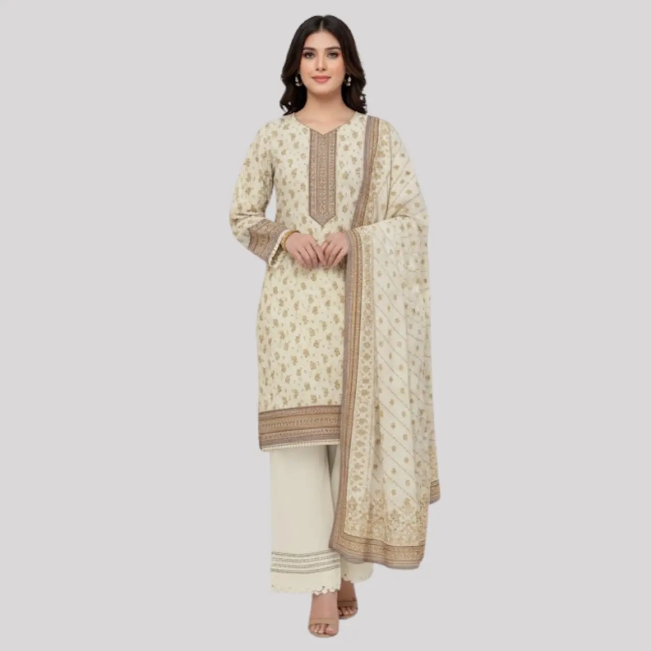 Be the first to review “Classic Off-White Printed 3-Piece Unstitched Lawn Suit” Cancel reply