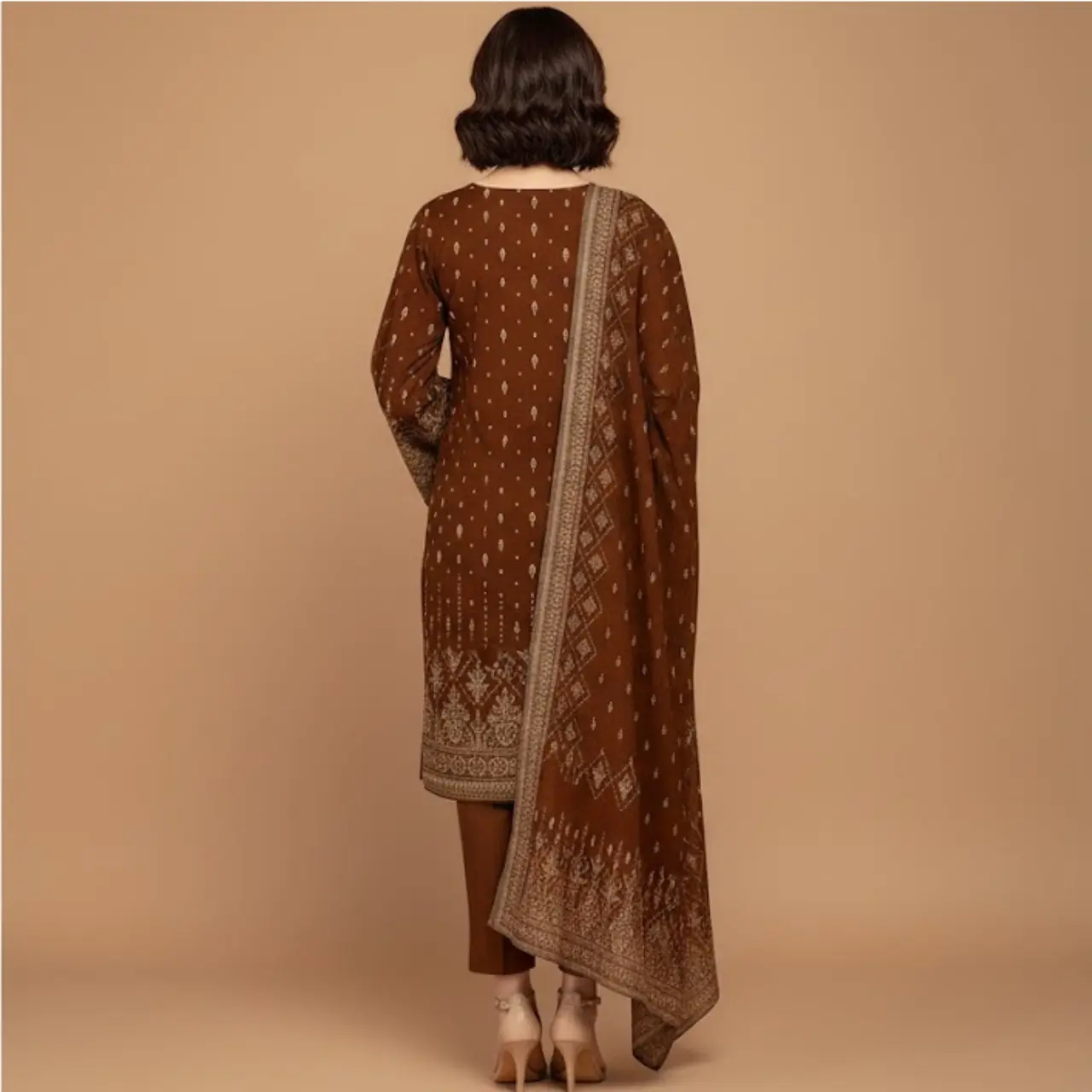Elegant Brown Printed 3-Piece Unstitched Lawn Suit