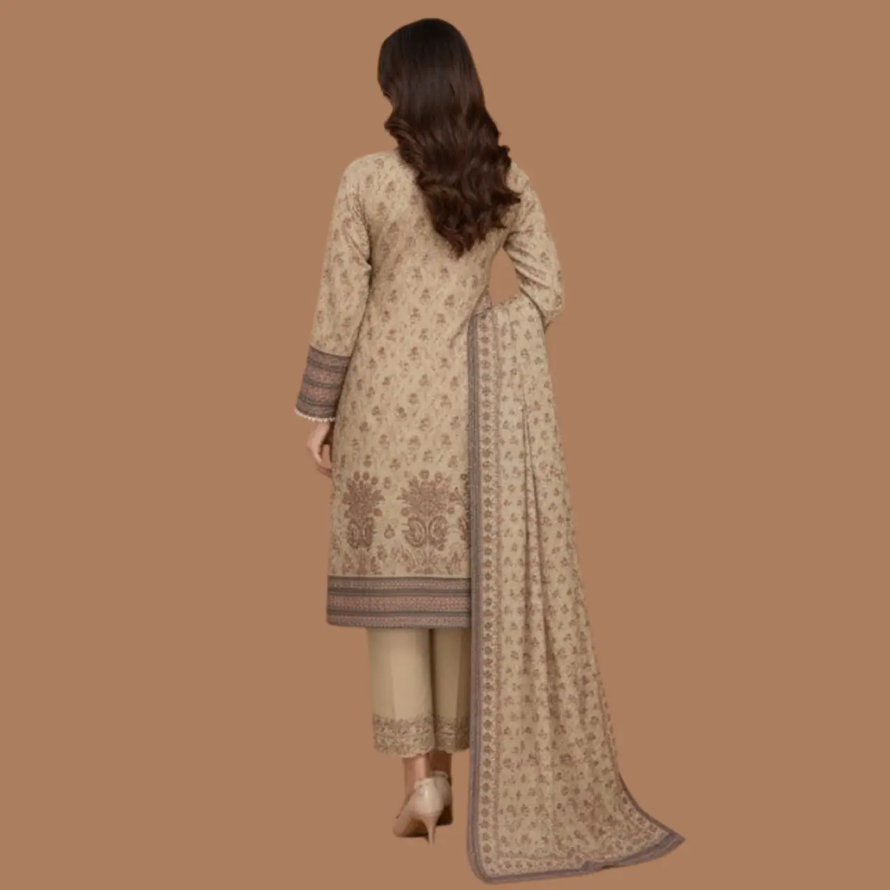 Elegant Brown Printed 3-Piece Unstitched Lawn Suit
