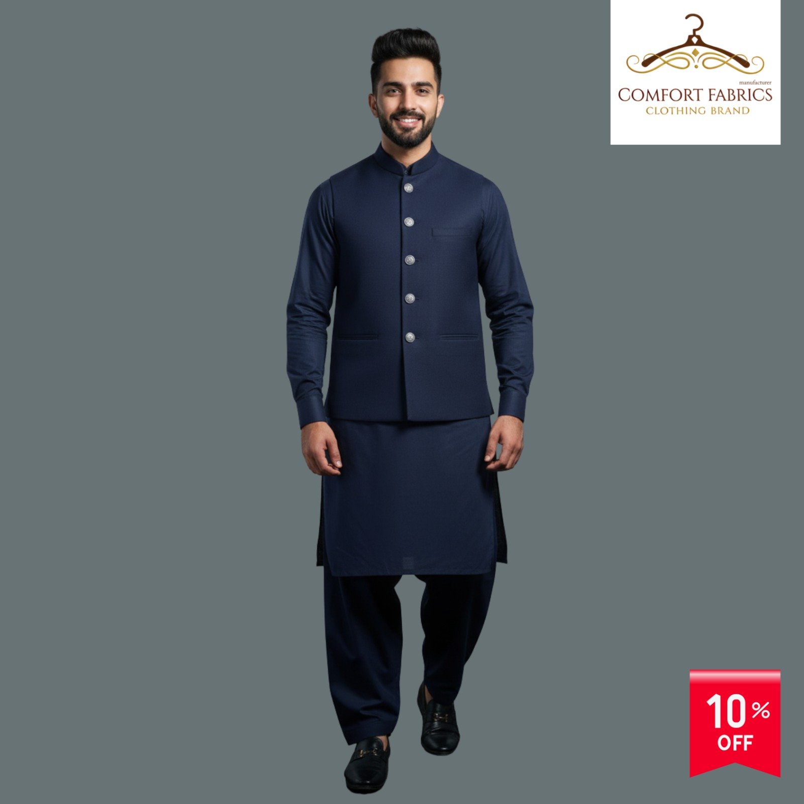 Men’s Premium Navy Blue Prince Coat with Kurta & Pajama – Comfort Fabrics Signature Collection
